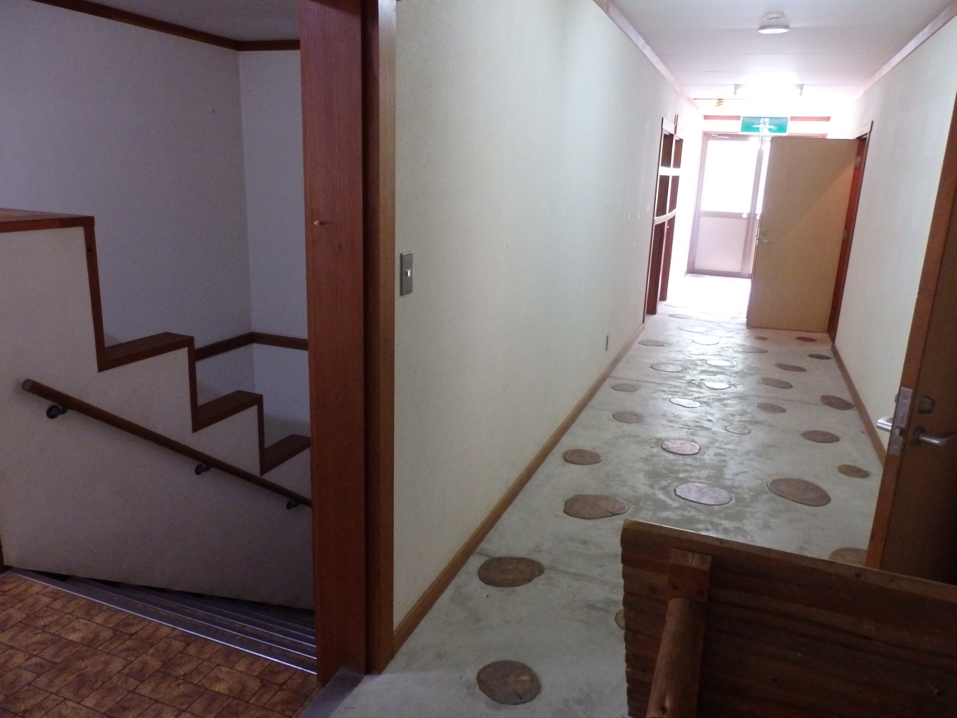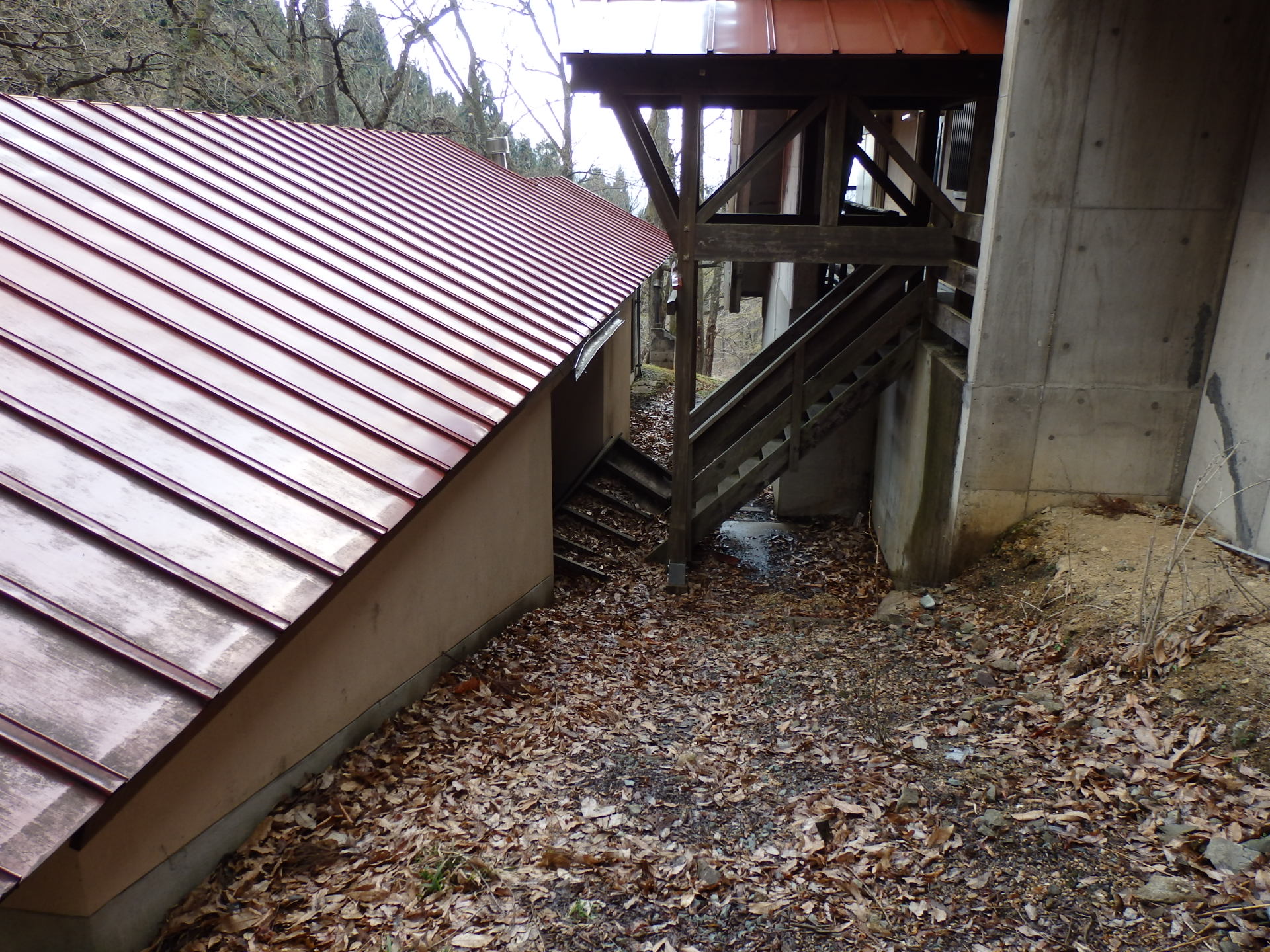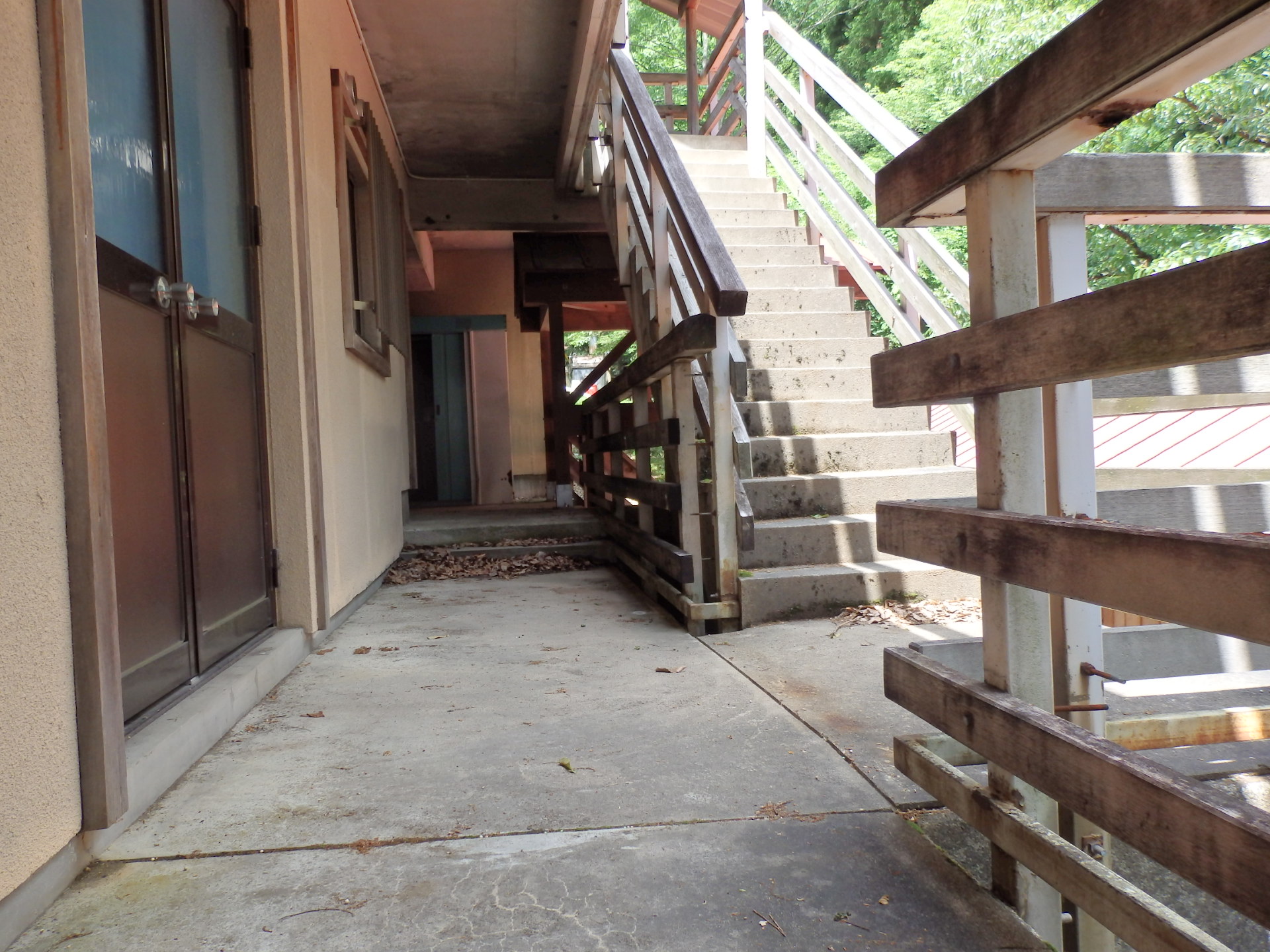 | 山荘は2階建て。一部を除き、自由に利用可能です。 屋内外にそれぞれ階段があります。 各階に外周通路があり、全部屋が開閉可能なため袋小路になることはありません。 |