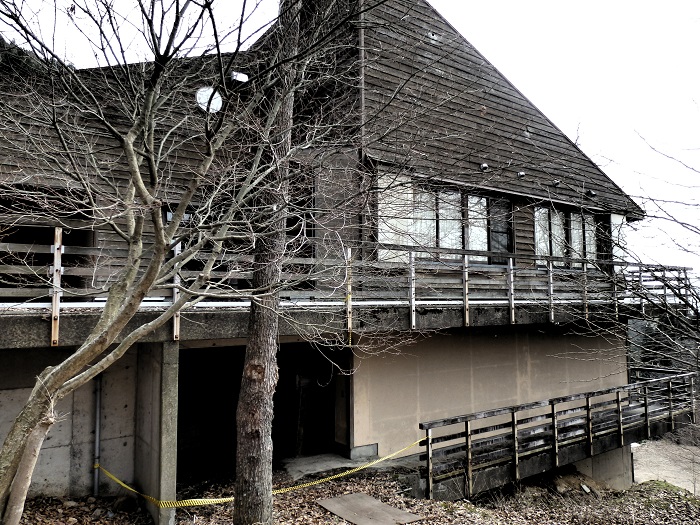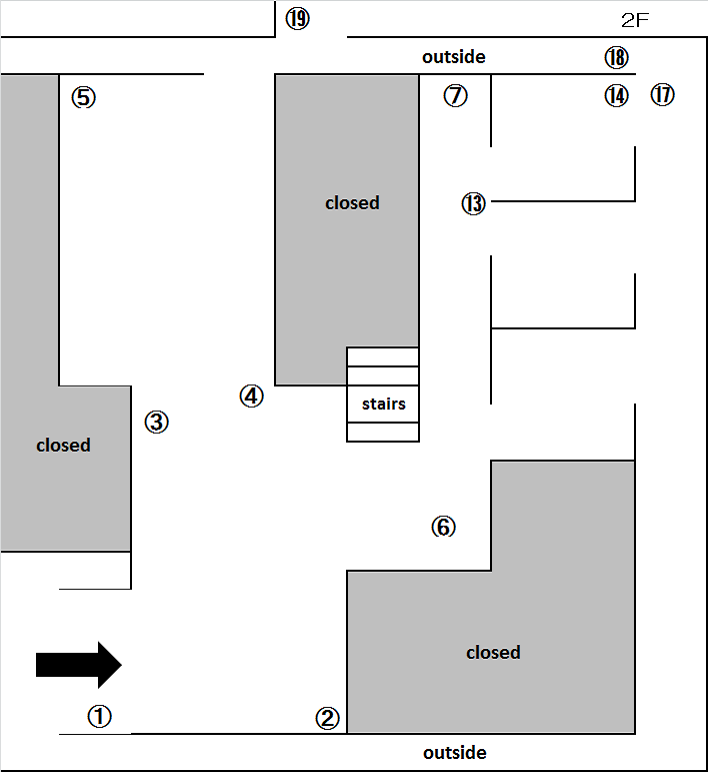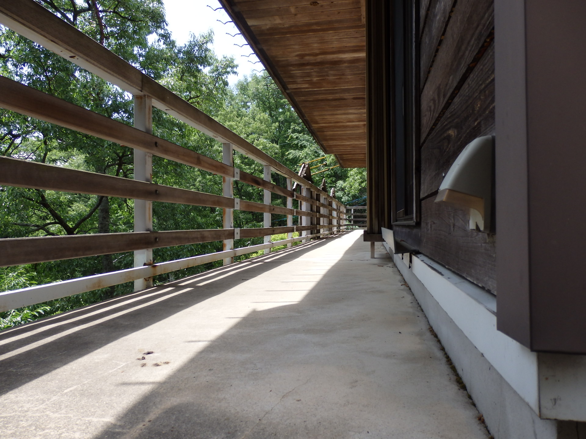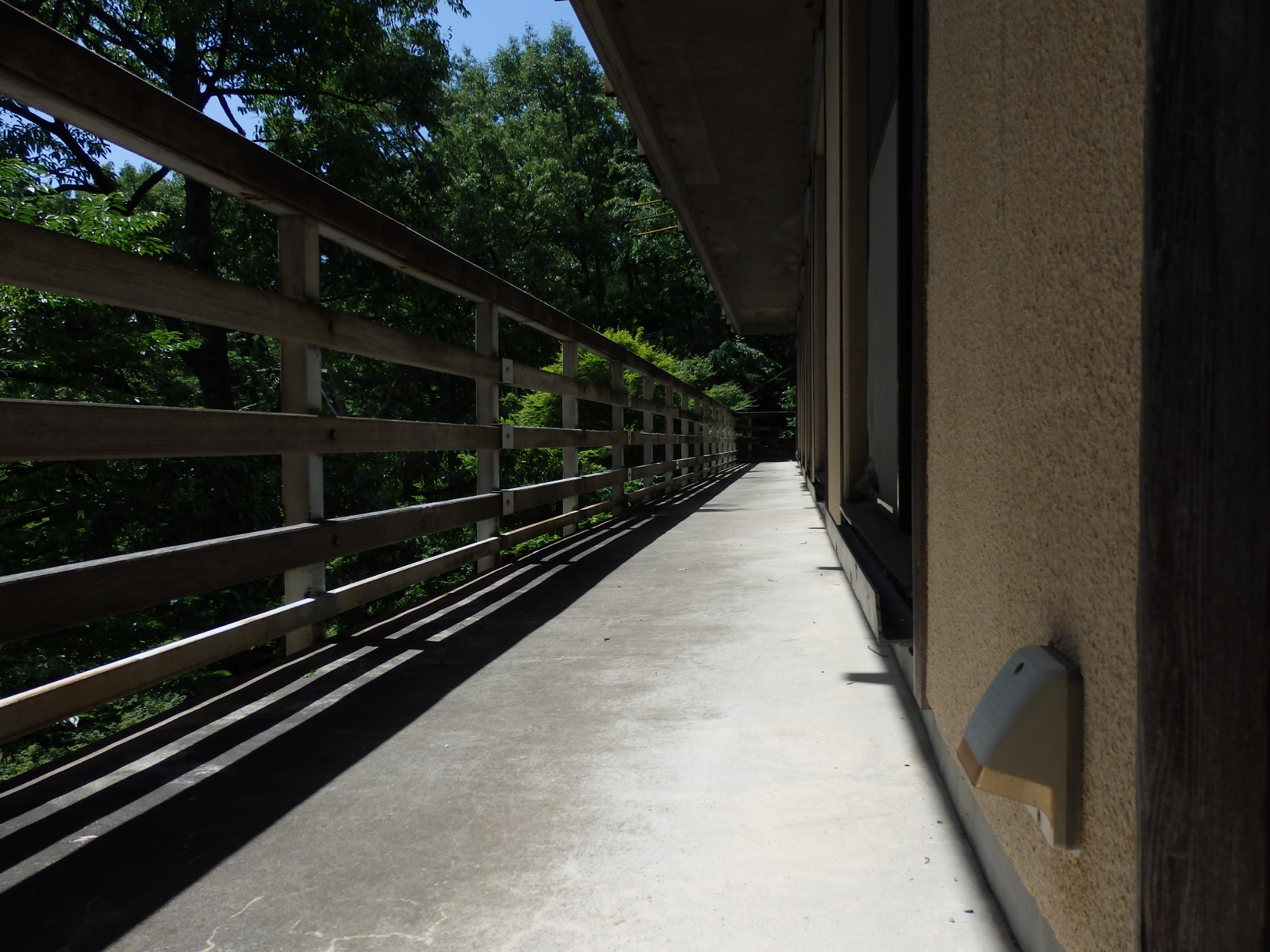 | 山荘は2階建て。一部を除き、自由に利用可能です。 屋内外にそれぞれ階段があります。 各階に外周通路があり、全部屋が開閉可能なため袋小路になることはありません。 |