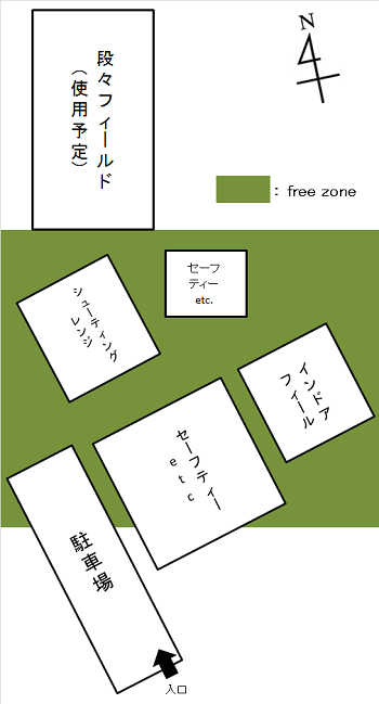 ・BB弾は完全バイオ弾のみの使用を許可します。 :色は>ナチュラルカラーを原則にし、白色の使用は禁止。 :弾速は0.20g / 98m/s未満 / 0.98J未満 (※弾速計X3200で計測します。) :セミバイオ弾、プラスティック弾の使用禁止。 ・服装は基本的に自由ですが、自身の安全を考慮したものを着用して下さい。 :服は厚手の長袖長ズボン、靴はスニーカーではなく、専用ブーツなどをお勧めします。 ・ゴーグルの使用は絶対!専用のゴーグルを着用して下さい。 :安全のため、セーフティーで着用し、スタート位置に移動して下さい。 ・フェイスガードの使用は自由ですが、安全のために顔を覆うことをおススメします。 ・ヒットコール。ヒットした場合は、大きく『ヒット!』と宣言し、両手を挙げゲームの妨げにならないように速やかに退場して下さい。 :ヒットは自己判断になります。体や衣服以外でも、装備品、銃など全てに接触した場合がヒットになります。(跳弾や味方の弾も含まれます。) ・ゾンビ行為の禁止!ゲームのトラブル防止のためにもやめましょう。 :ゾンビ行為を発見した場合、フィールド使用をお断りすることがあります。 ・フィールド施設の扉、窓などの無断開閉は禁止します。 ・フィールド内の障害物を無断で移動しないで下さい。 :施設設備を破損、紛失した場合は、その者に損害賠償などを要求する。 ・ゴミ、タバコ殻等の処理は自己責任でお持ち帰り下さい。 ・使用後移動した物品や窓は元の状態へお戻し下さい。 |